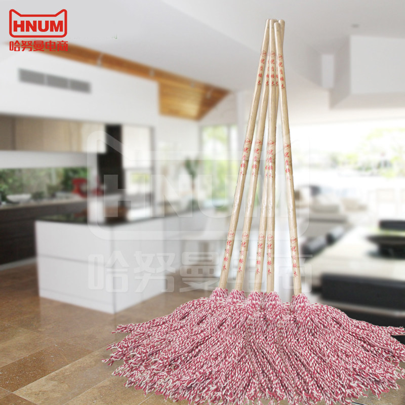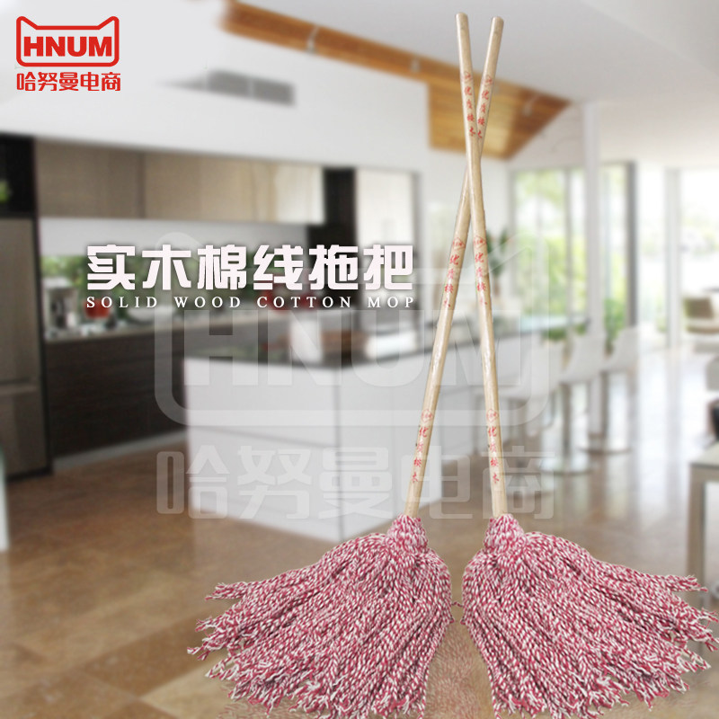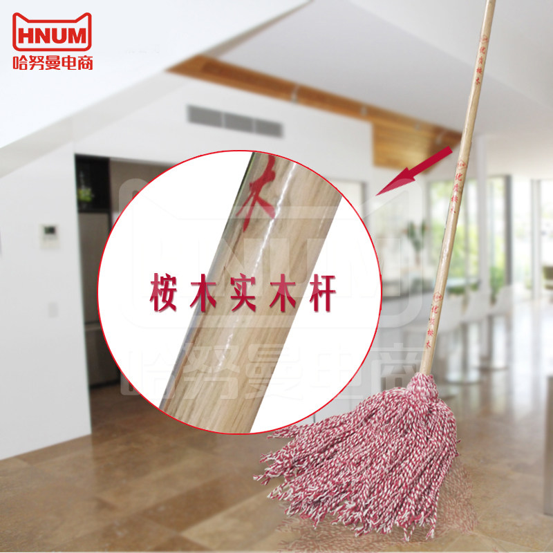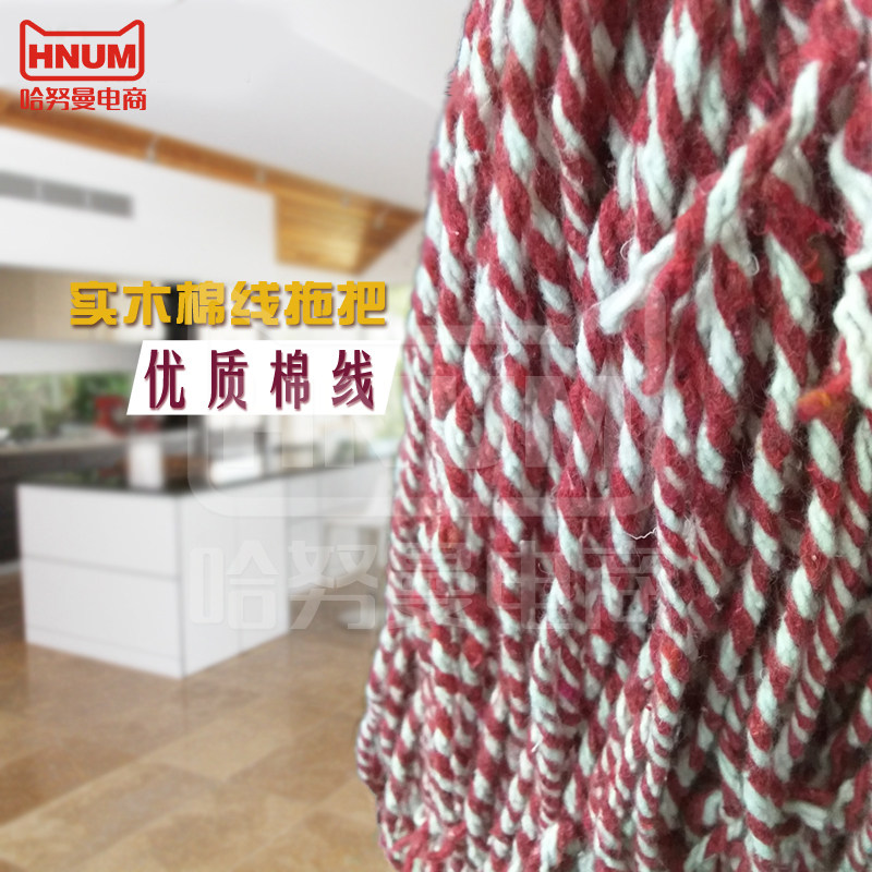 Solid Wood Handle Lengthened Wood Rod Cotton Thread Mop Round Head Suction Mop Red White Thread Rope Old Mop