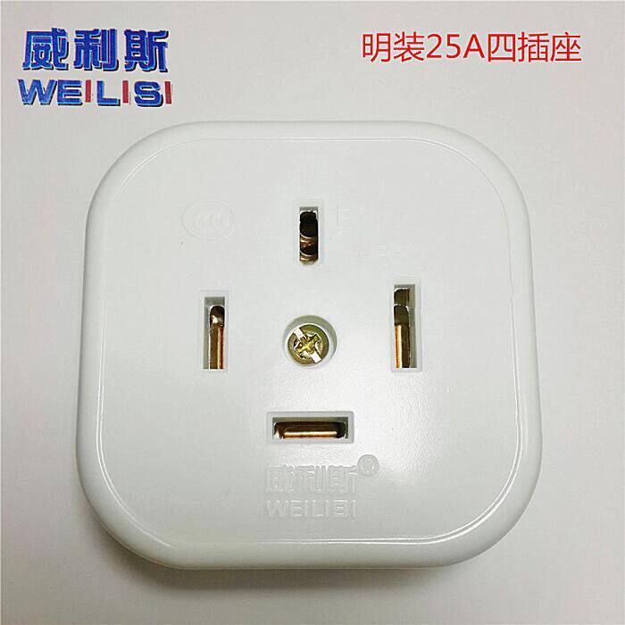Willis 25A three-phase four-wire flat plug socket four-plug high-power plug socket 25A 380V