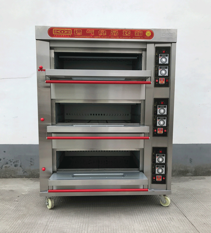 Fleeting electric water heater Three layers six-disc gas commercial oven cake bread Pizza Egg Tart 3 Floors 6 Pan Gas Oven Big Oven