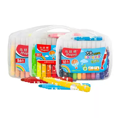 MAPEDMaped big head watercolor pen kindergarten baby easy to wash thick head color pen 24 color 36 color children hand painting brush round head color pen set can be washed multi color children painting brush