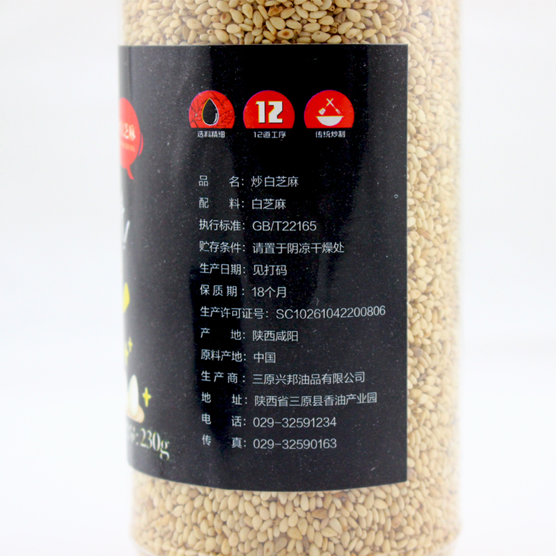 Shaanxi specialty fried white sesame ready-to-eat canned seasoning Free elution skin household mixed vegetables to make chili oil 230g