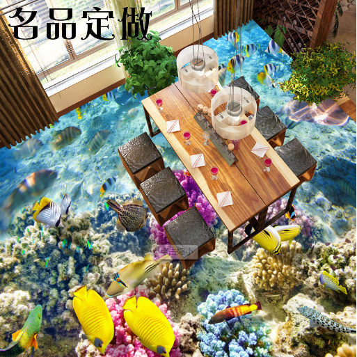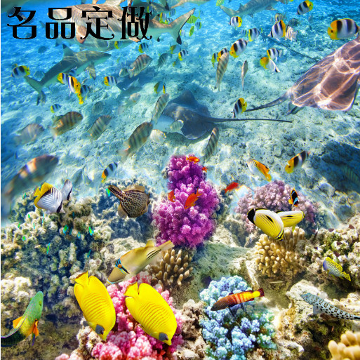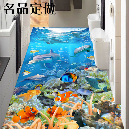 Solid 3D seafloor world floor board leather floor sticker living room corridor toilet floor tiles glued to waterproof ground to be made-Taobao