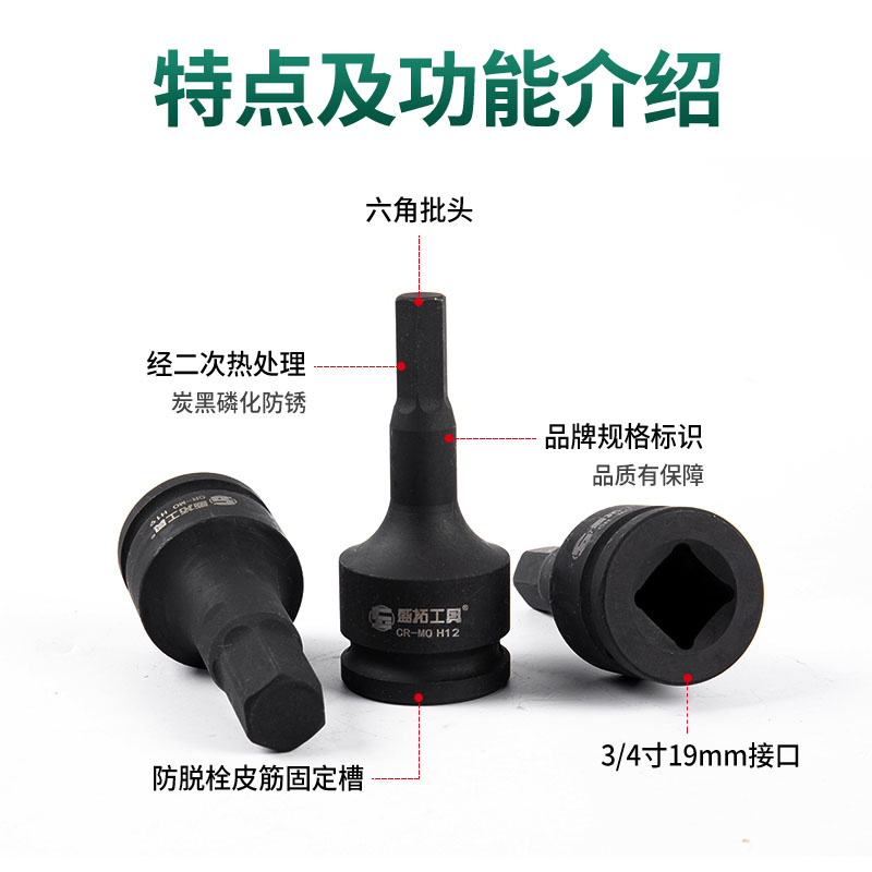 3 4-inch pneumatic wrench 19mm pneumatic inner hexagonal sleeve screwing tool lengthened sleeve lengthened sleeve inner hexagonal batch head