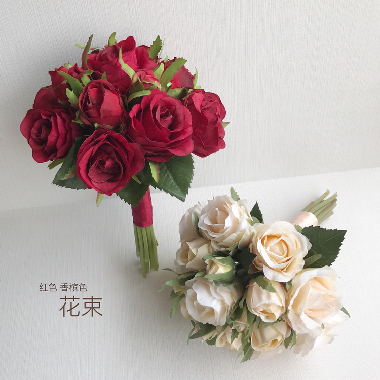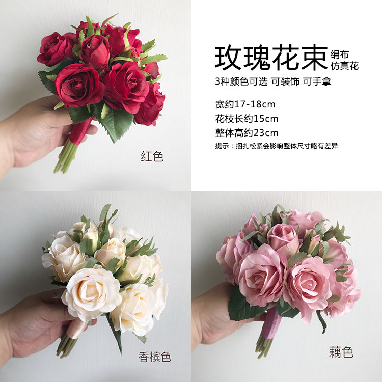 Simulation bouquet Wedding bride bridesmaid little angel flower girl Hand bouquet production Flower decoration Red Roses