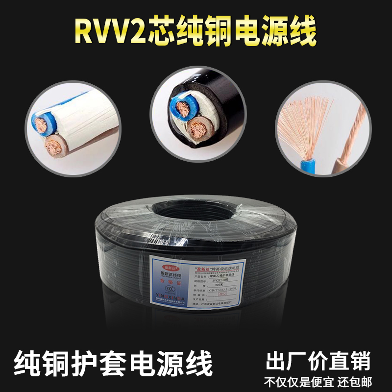 National standard pure copper wire rvv2 core 0 5x1 0 1 5 2 5 sheathed wire monitoring power cord 200 meters disc