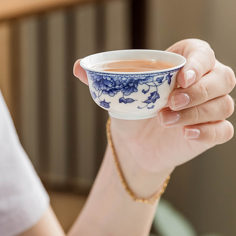 Small teacup National Peony Tea Cup Lotus Theatre Tea Cup Red Lotus Tea Cup Ruiyen Snow View Tea Cup Yellow Blue Cup Wealthy Yangtze Yangtze Large Tea Cup Snow View Red