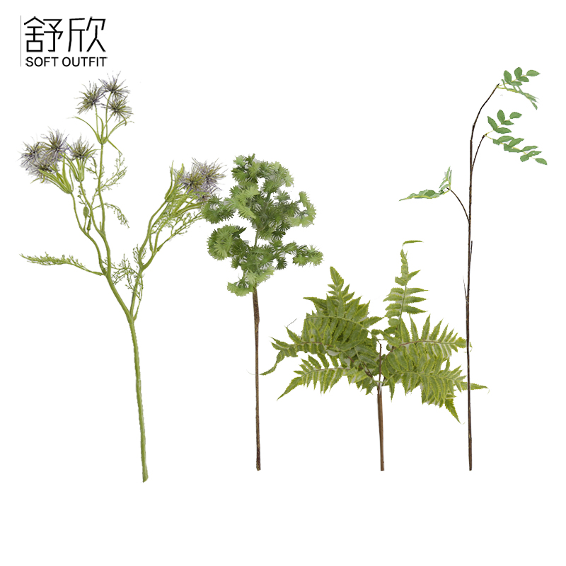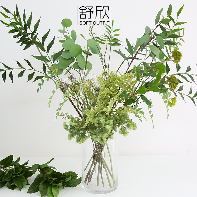5 wild grasses, ferns, bay leaves with fruit, eucalyptus leaves, round eucalyptus leaves, wind shadow leaves, saponins leaves, pearl grass lace flowers, small pine needles, rich branches, fern leaves, star grass, beige star grass, blue red Swiss wood big branches
