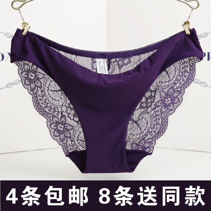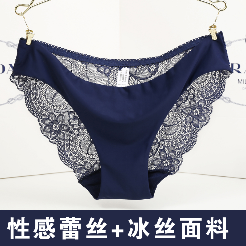 Large size pseudo-pussy panties women's dress gags cos sexy lace ice silk cd changing dress triangle pants low waist transparent pants head