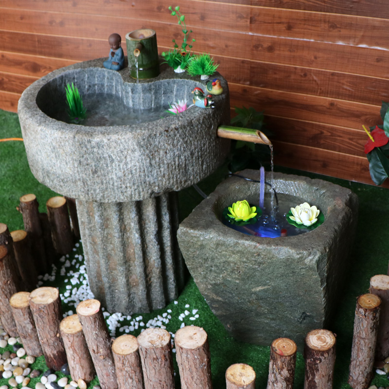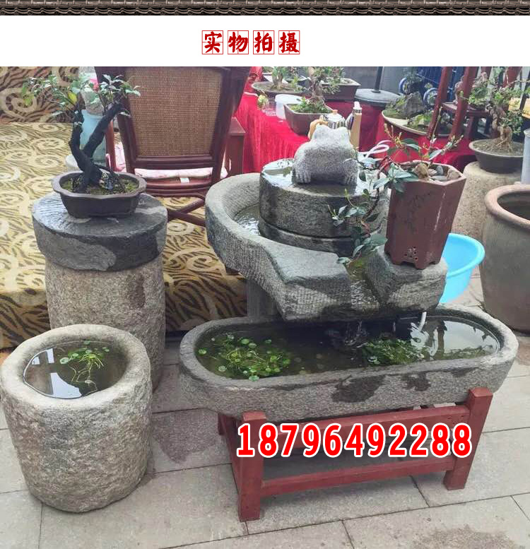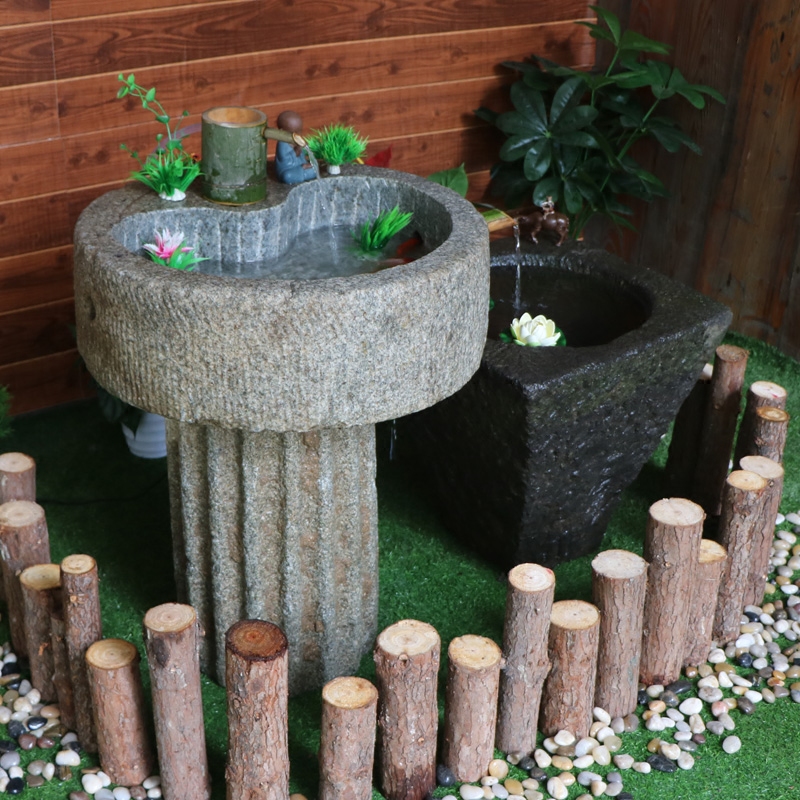 Old stone millstone stone tank stone tank flower pot indoor courtyard stone basin flowing water landscape swing piece of fish pond old sink fish tank