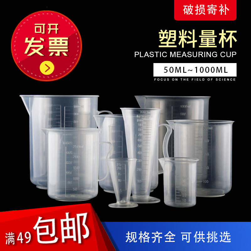 Plastic beaker 50 100 250 500 1000ml without handle graduated measuring cup for testing