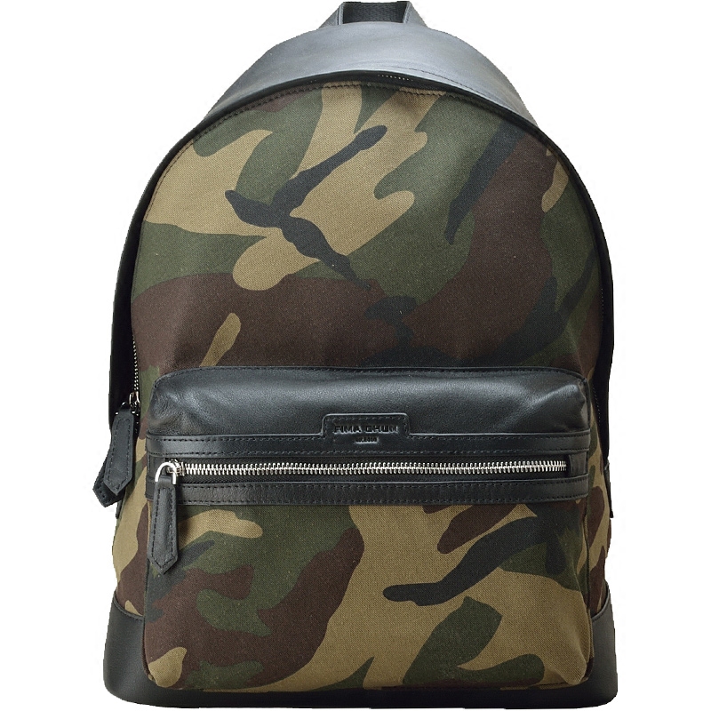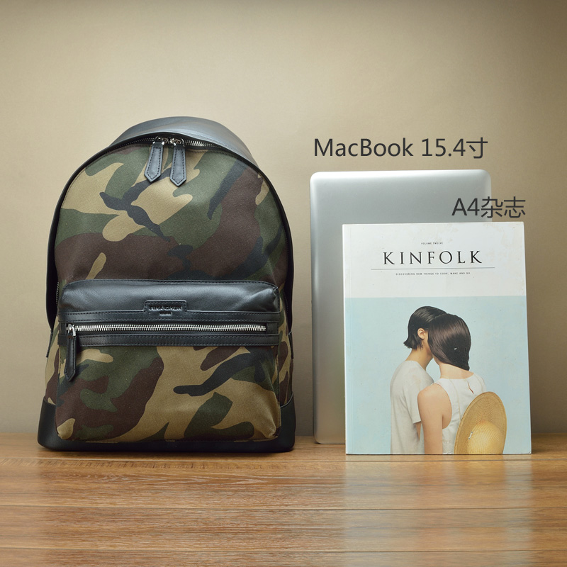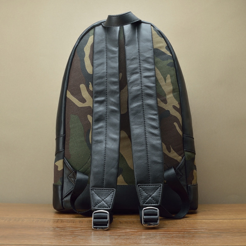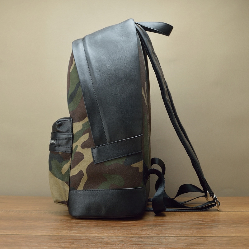 Imported camouflage canvas leather backpack European and American street punk military sports front layer cowhide computer bag