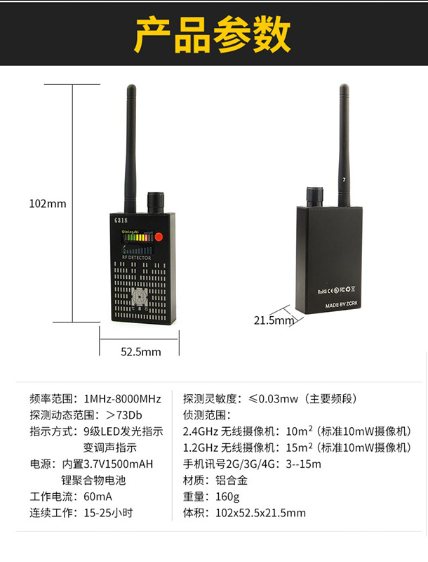 Anti-eavesdropping snooping detector Dog anti-hotel camera monitors Sneak Signal Sweep GPS Positioning Detector