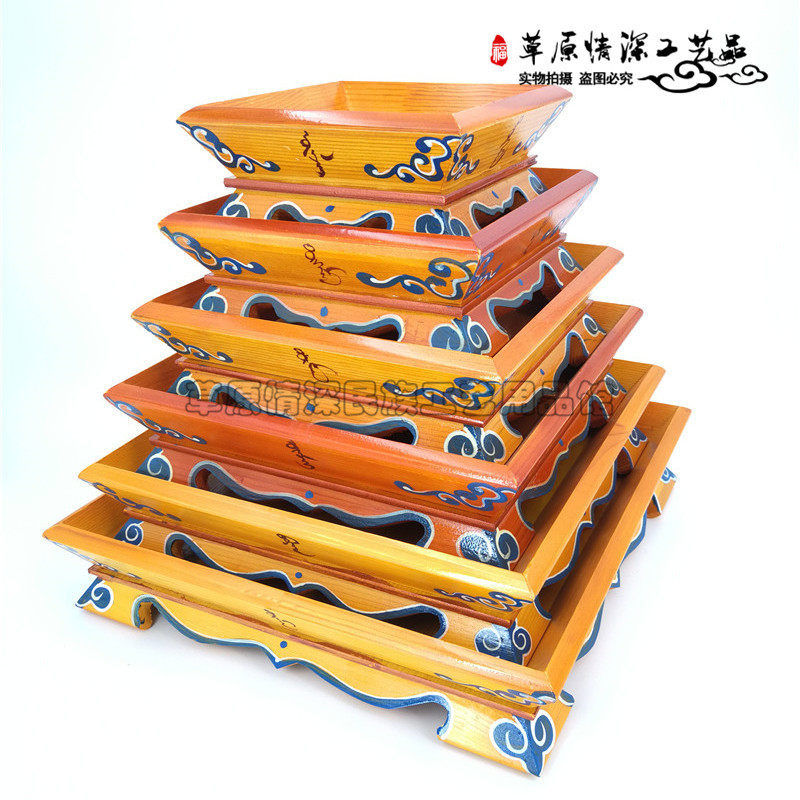 Blue Color Ploy Pine Wood Square Pan Snack Pan Cheese Pan Candy Tray Handlebar Meat Dish