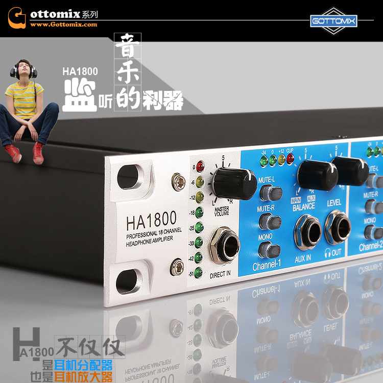Gottomix HA1800 18-way studio headphone amplifier distributor ear split ear amplifier can be connected to the intercom