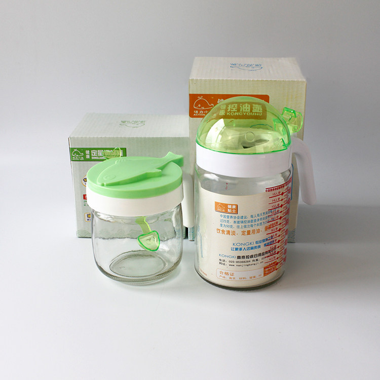 Small three-sample seasoning pot oil control pot set Glass household gift box 4 quantitative oil pot Soy sauce pot Disease control