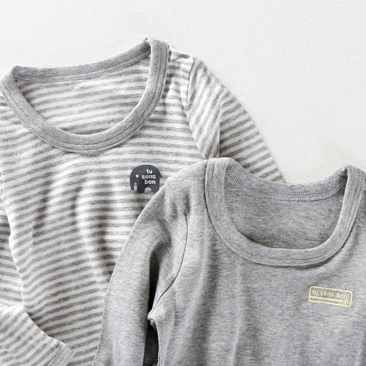 Children's clothing autumn and winter boy baby pure cotton long sleeve beat bottom clothes autumn clothes slim fit T-shirt pyjamas grey pure color stripe
