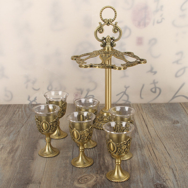 Chinese white wine glass set small wine glass glass wine glass goblet classical wine set household small wine cup 6 packs