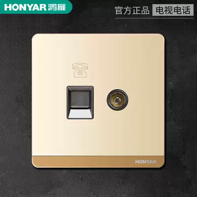 Hongyan champagne gold TV phone socket 86 type voice closed-circuit wired panel concealed household two-in-one