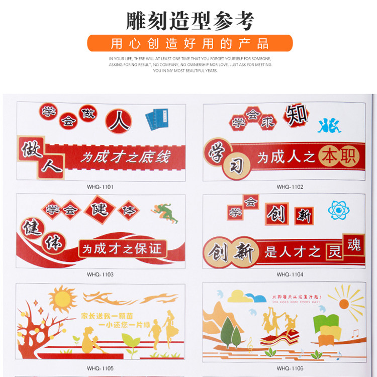 Campus cultural decoration Famous slogan placard Corporate cultural corridor cultural school wall UV Shever board carving