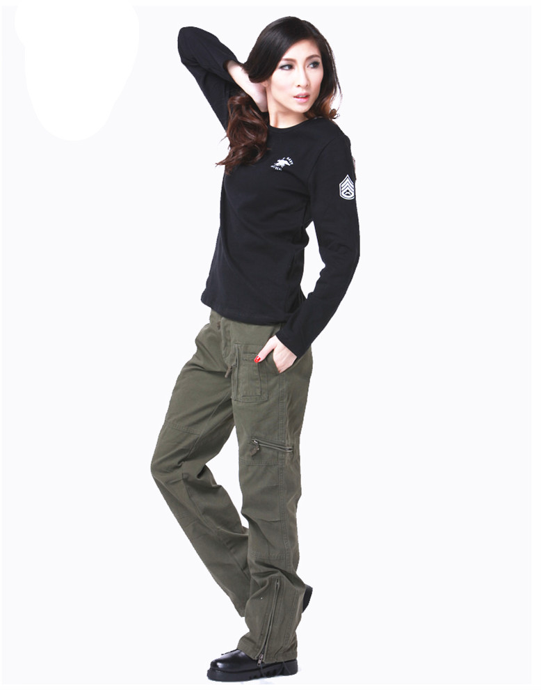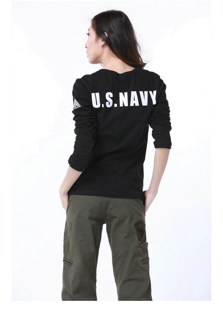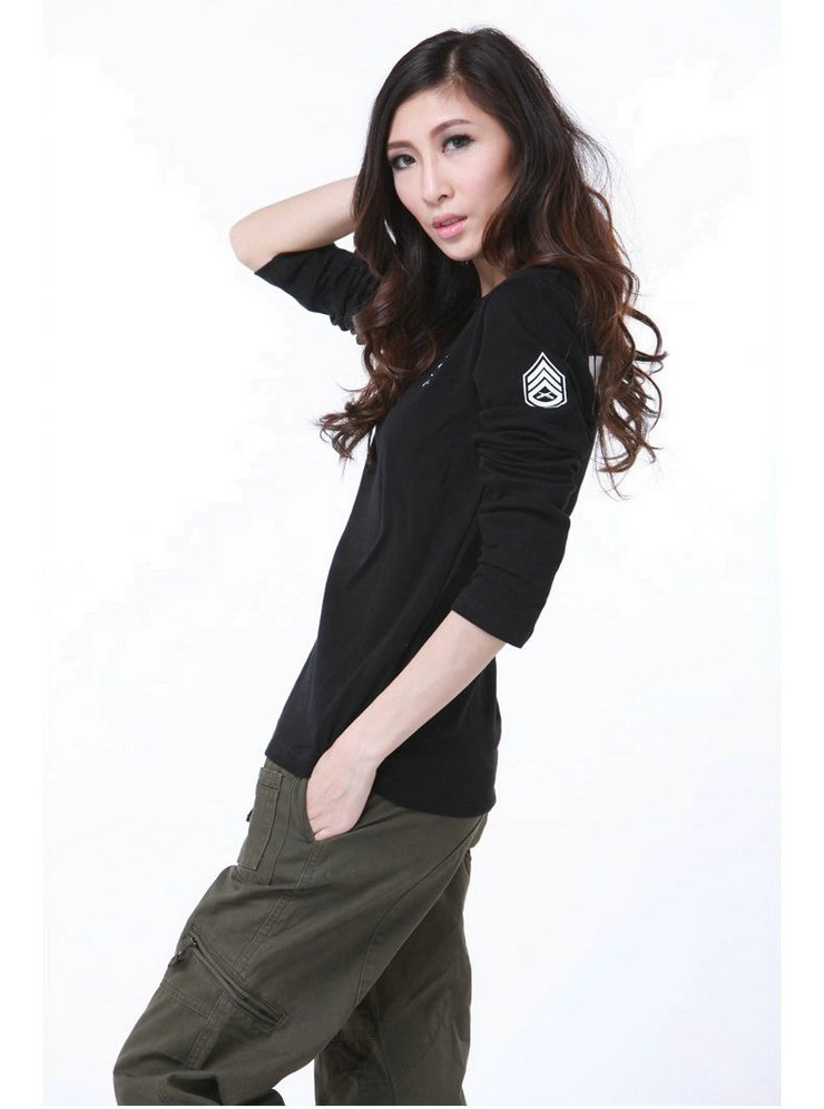 Spring and autumn Long sleeves T-shirt Women's pure cotton casual military uniform T-shirt Body Stretch Fitness Sport Beating Undershirt Woman black T-shirt