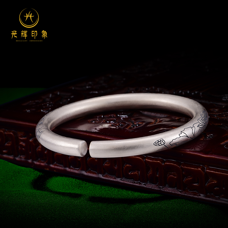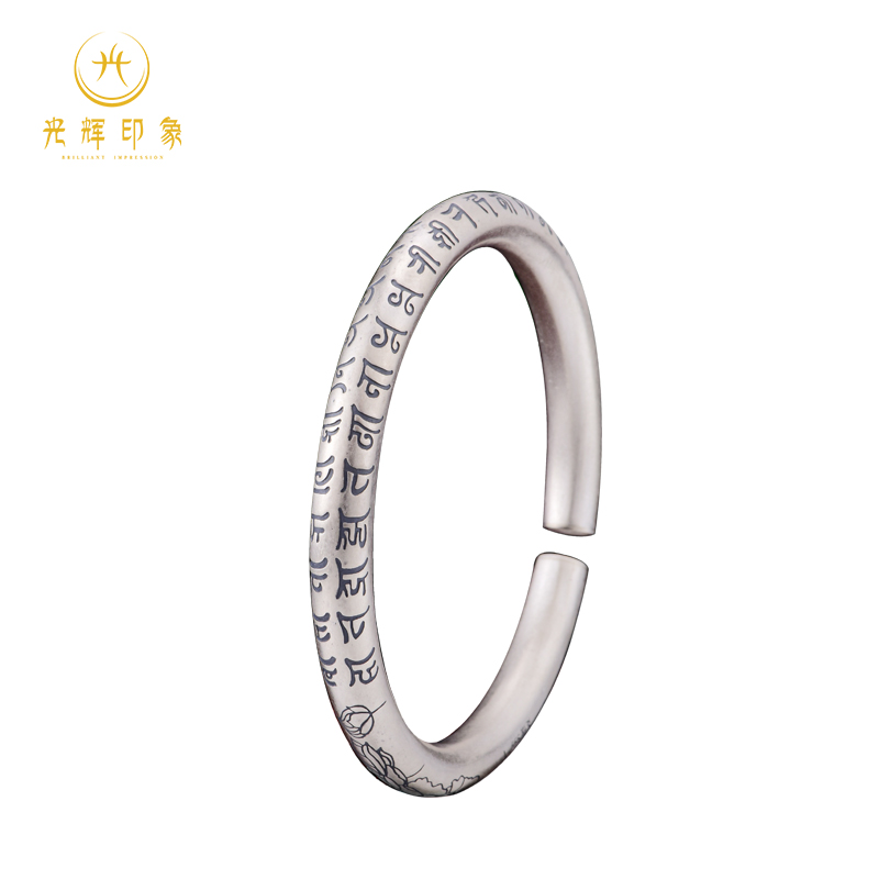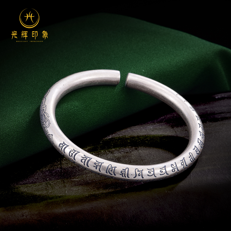 Glorious impression S999 pure silver lenght mantra bracelet male and female with lotus opening Tibetan fashion foot silver bracelet