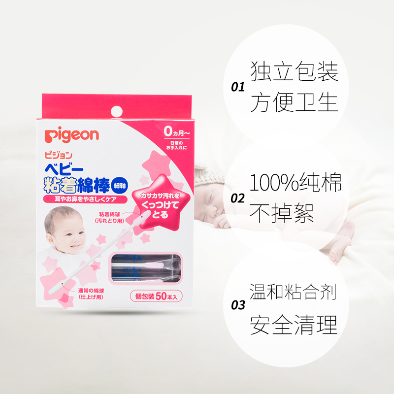 (Japan native version) Baby Baby Clean Fine Shaft Cotton Swab Sticky Cotton Swab Sticky Independent Packaging 50 sticks