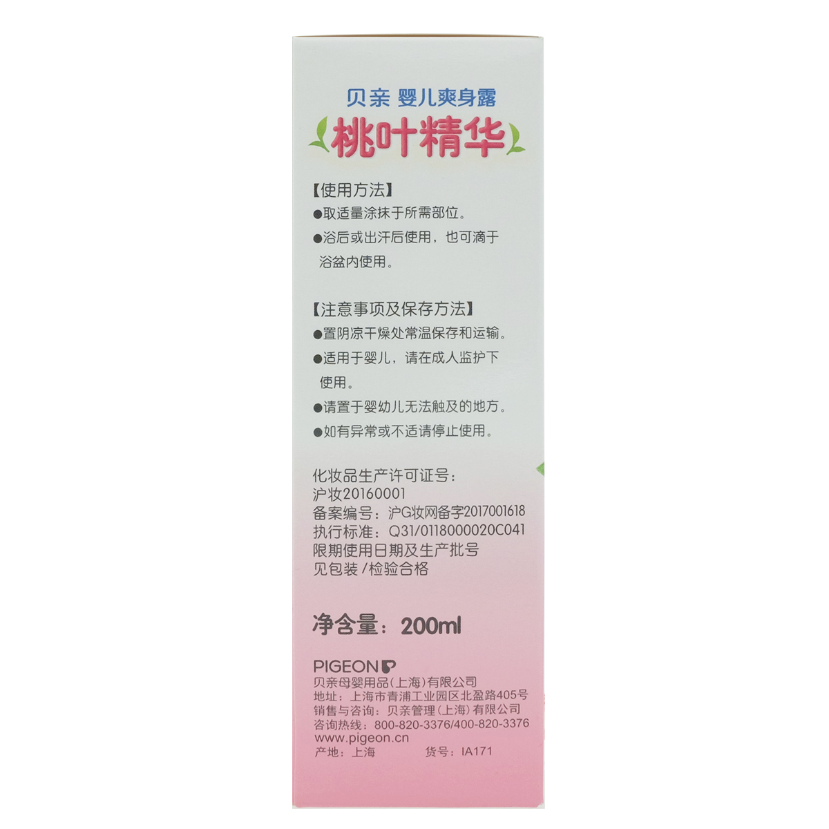 Beloved baby Peach Leaf Essence Refreshing baby Peach Water Liquid prickly Pink Body Powder 200ml IA171