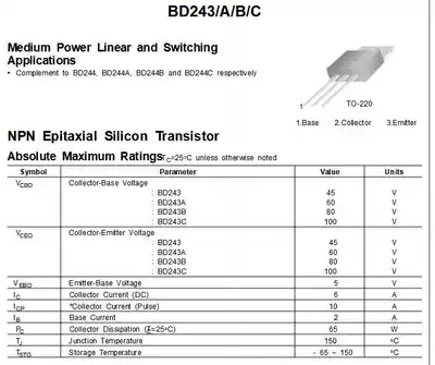 Power triode BD243C 6A 100V TO-220 NPN transistor Special