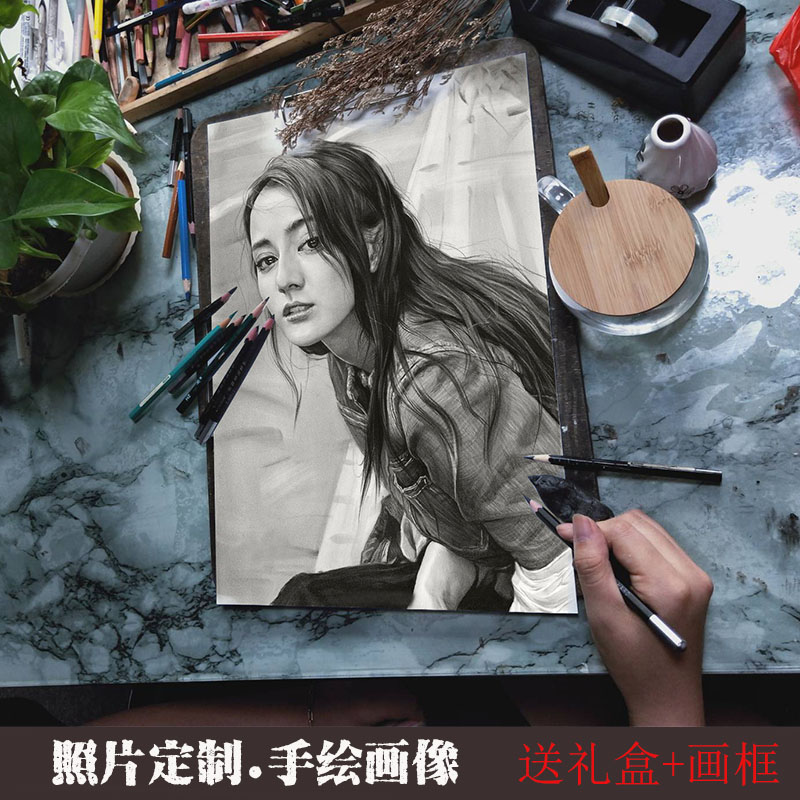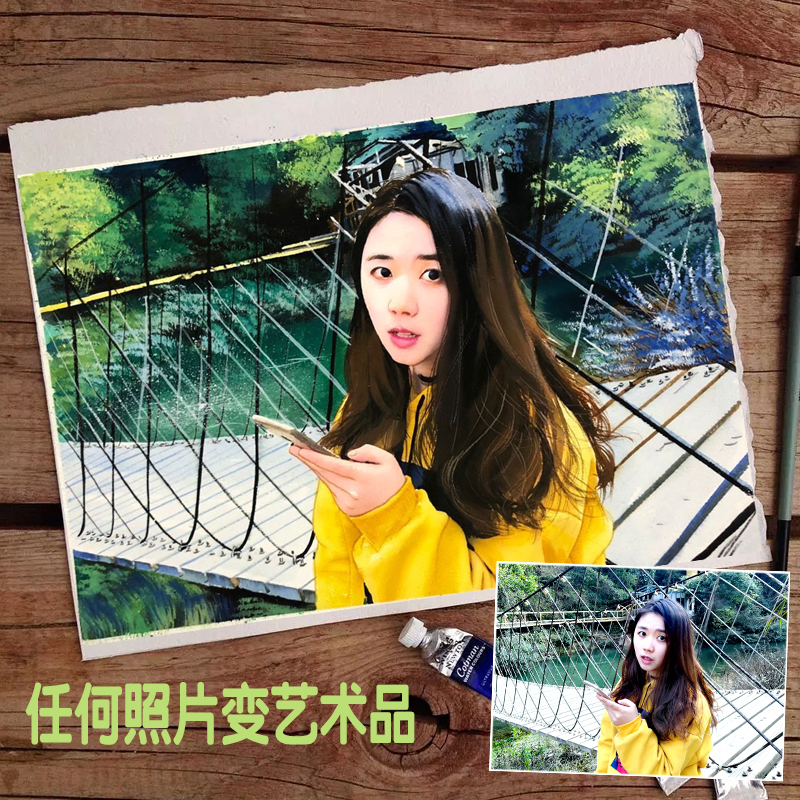 Hand-painted head portrait sketching like a custom human object painting like a colorful pencil portrait lovers' portrait avatar live-action photo generation