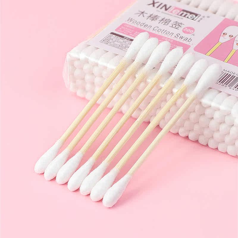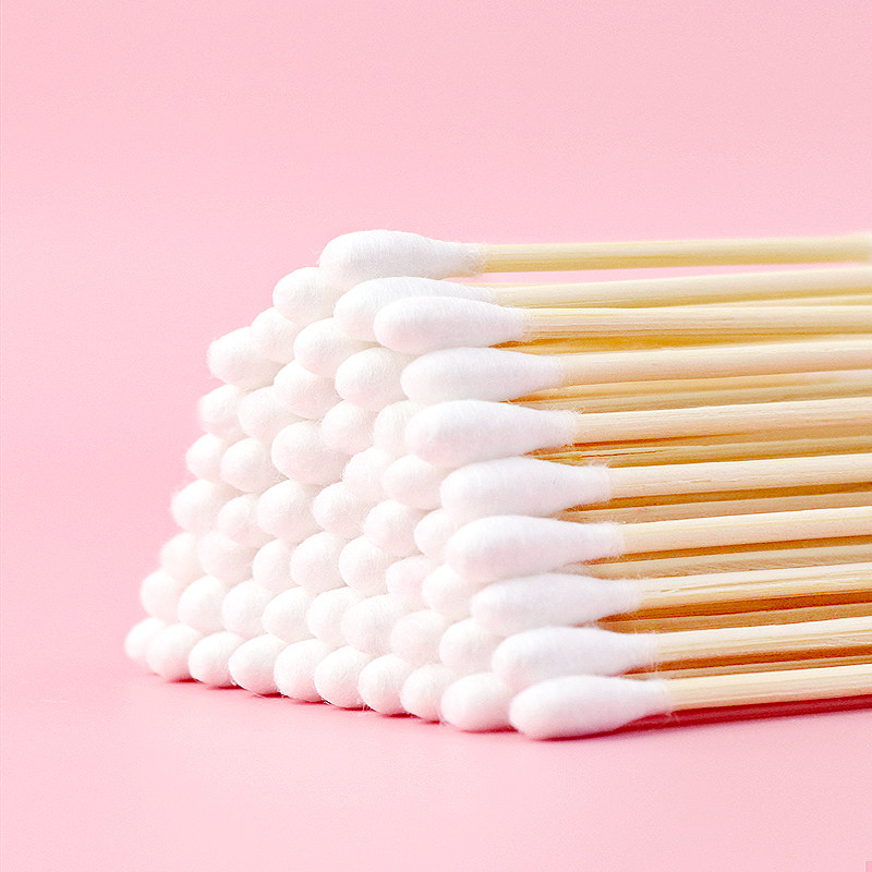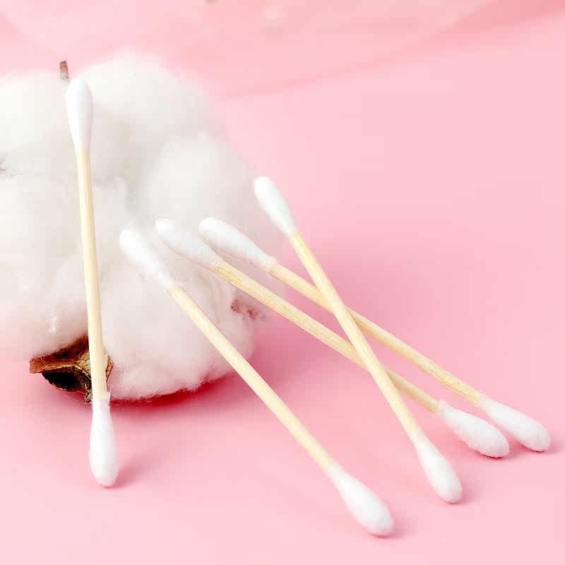diymouth red homemade material lipstick double head wood stick cotton stick clean remove makeup cotton stick