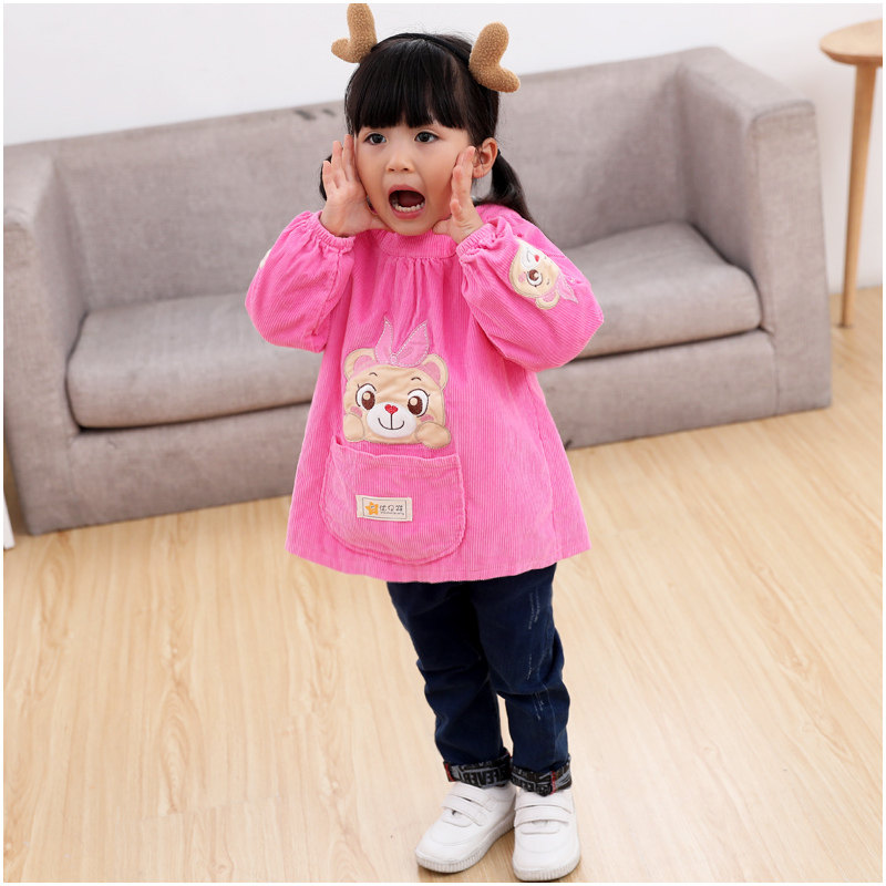 Boys and girls autumn and winter corduroy 1 waterproof and anti-dirty coveralls 2 years old 3 fashion foreign style 4 children's anti-dressing and eating clothes