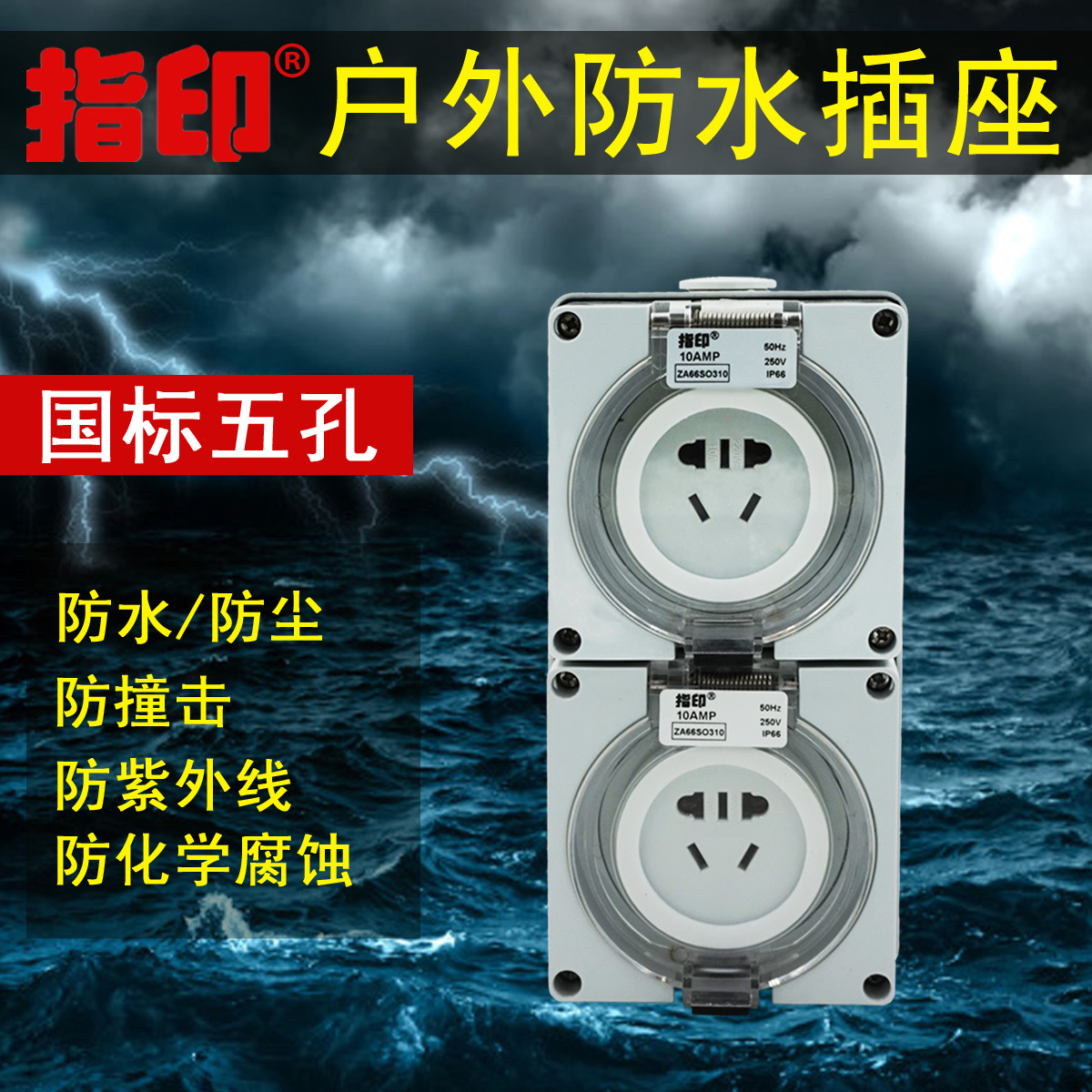 Finger print waterproof switch Two-joint double-position five-hole socket outdoor waterproof and anti-rainstorm switch socket