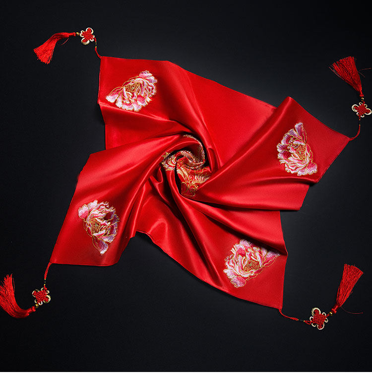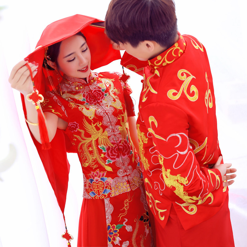 baby with the same wedding red hijab Chinese wedding Xiuhe clothing embroidery flower tassel bridal hijab red dragon and phoenix