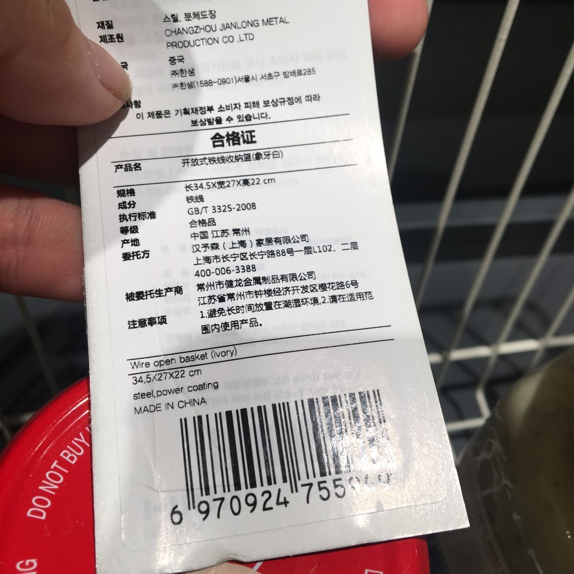 South Korea Hansen counter selection open iron can be stacked with handle kitchen dishes and sundries storage basket