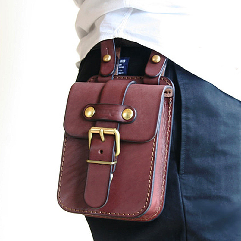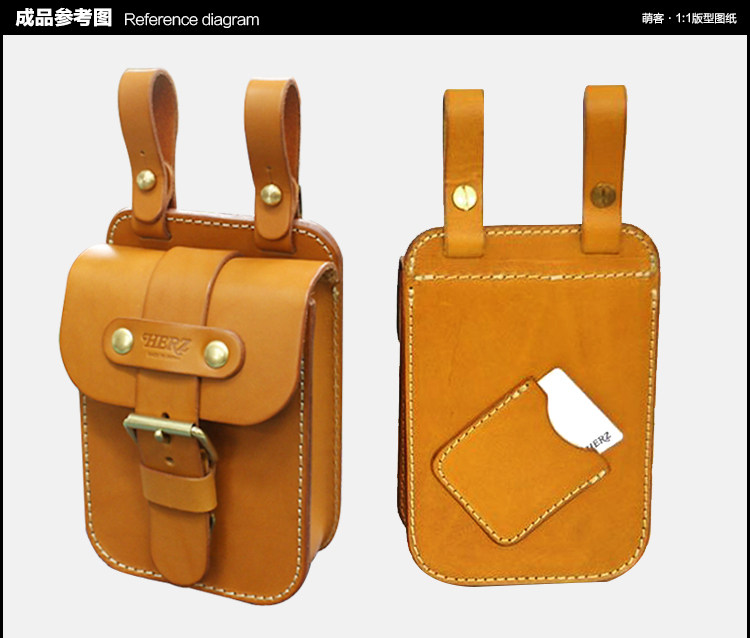 Handmade leather DIY production Fanny pack Mobile phone bag Version of the drawing grid sample Vegetable tanned leather hand-made entry classic