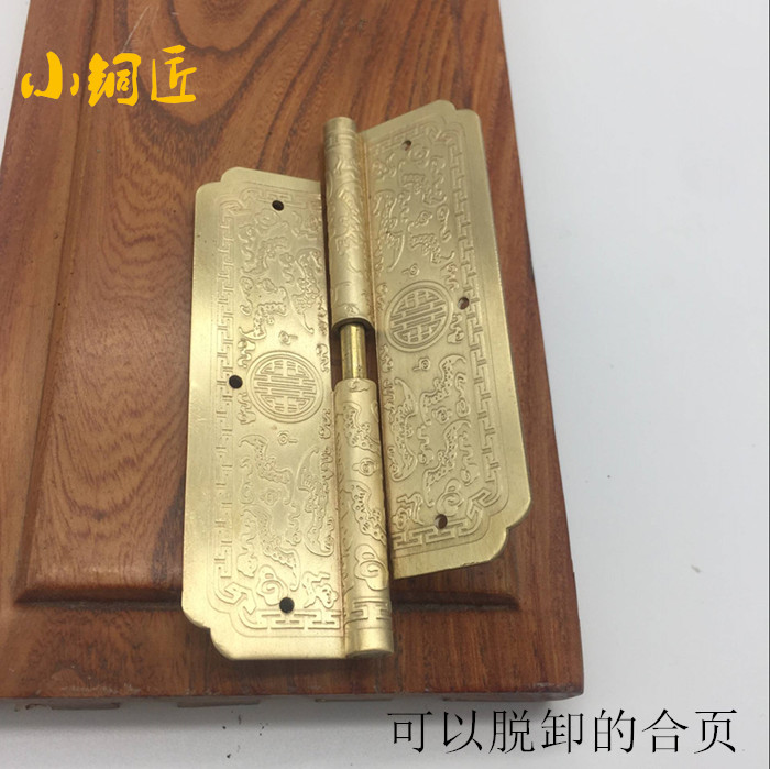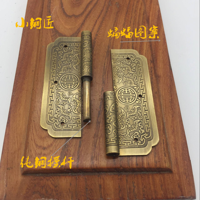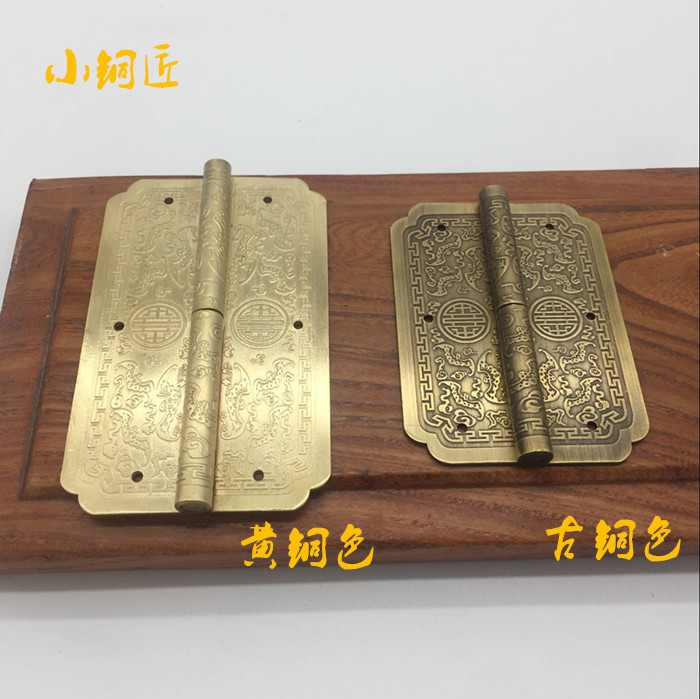 Chinese style pure copper antique copper hinge Classical Furniture accessories TV cabinet bookcase door top cabinet brass carved flower hinge