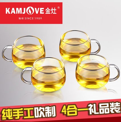 Gold stove heat-resistant glass tea cup flower tea cup water cup with handle Gongfu tea set gift set K-106 K-105