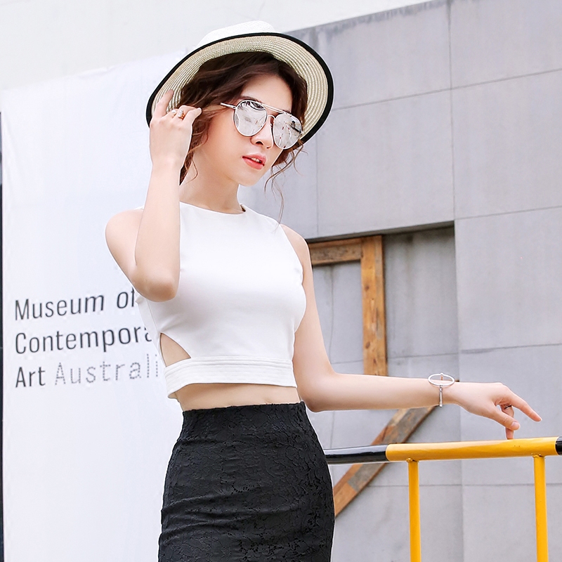 New Pint Summer White Harness Vest Woman Hit Bottom Short Style Fashion 100 Hitch Body Seduces Sexy Little Vest Dew navel blouse