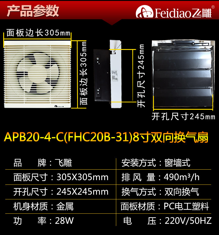 Fly Engraving Ventilator Two-way Exhaust Fan Kitchen Make-up Room Bathroom Wall Window Style Exhaust Air Blower Mute 8 Inch