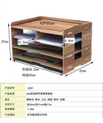 D039 Wooden A3A4 document stand Printing rack four-layer large classification office supplies storage desktop bookshelf