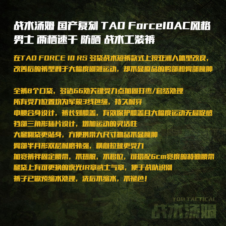 Tactical Tom Homemade Remean TAD Force10 Grey Amphibious Speed Dry Sunscreen Military fan Tactical Clothing Pants