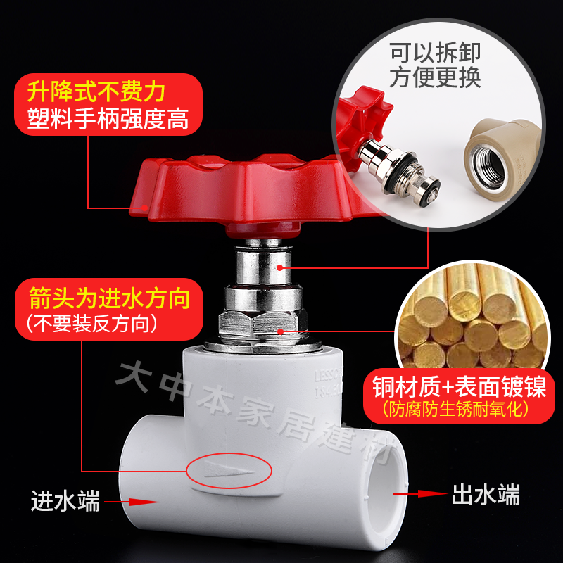 Liansu PPR globe valve lifting copper globe valve 20 25 4 minutes 6 points valve water pipe hot melt pipe fittings