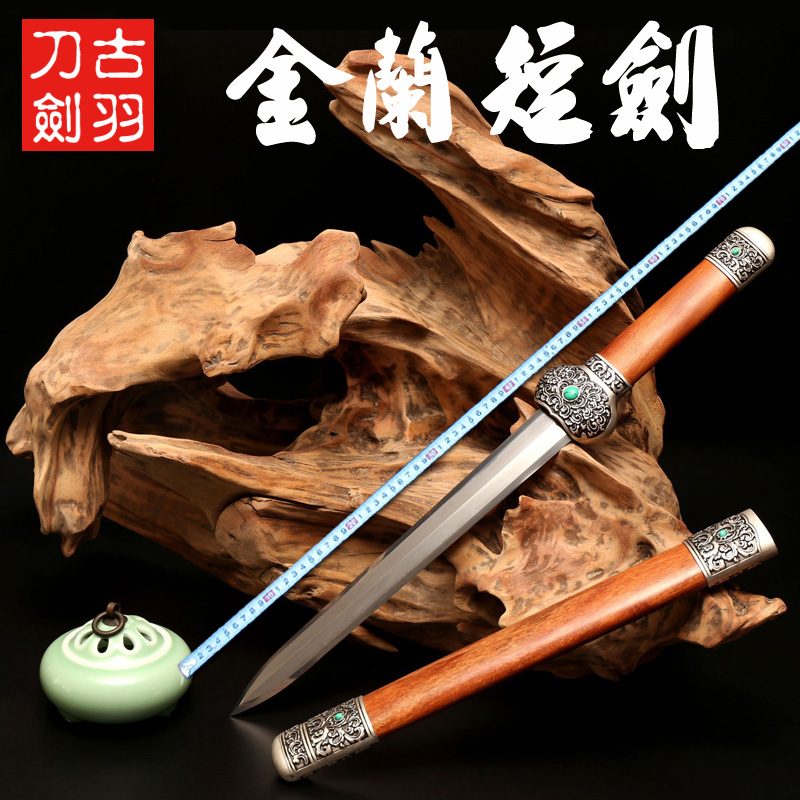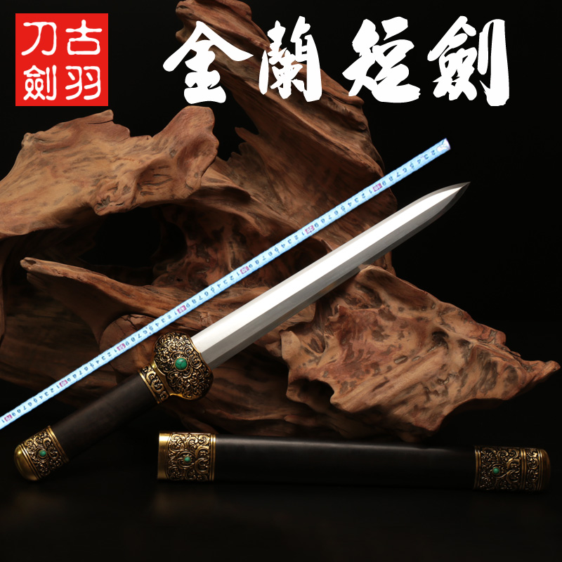 Dragon Springs Ancient Plume Sword Knife Sword Gold Lan Short Sword Hand Forged and beaten 8-faced patterned steel Gift small sword unopened