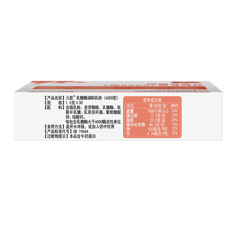 Whole milk powder maltodextrin lactase lactase galactocephalus galactobacillus lactis bifidobacterium gluconate zinc silicate calcium