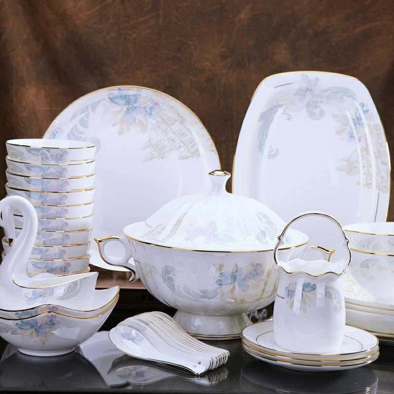 Jinqiutang Jingdezhen ceramics 60-piece gold-rimmed bone china tableware set bowls and plates Western-style court style - Taobao