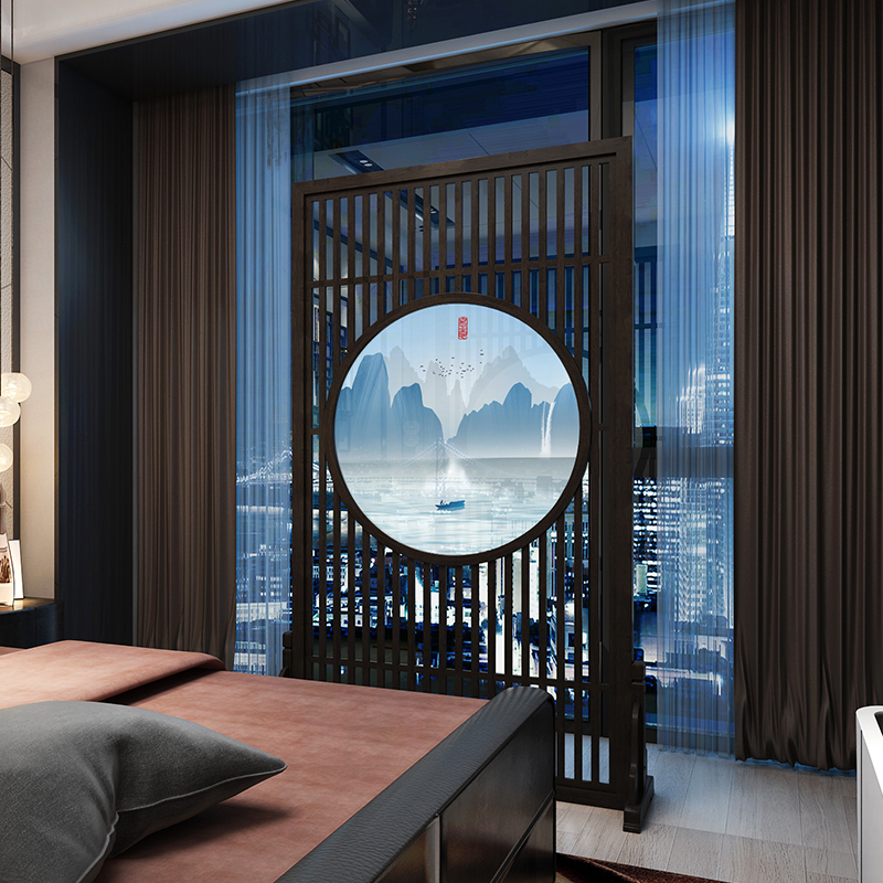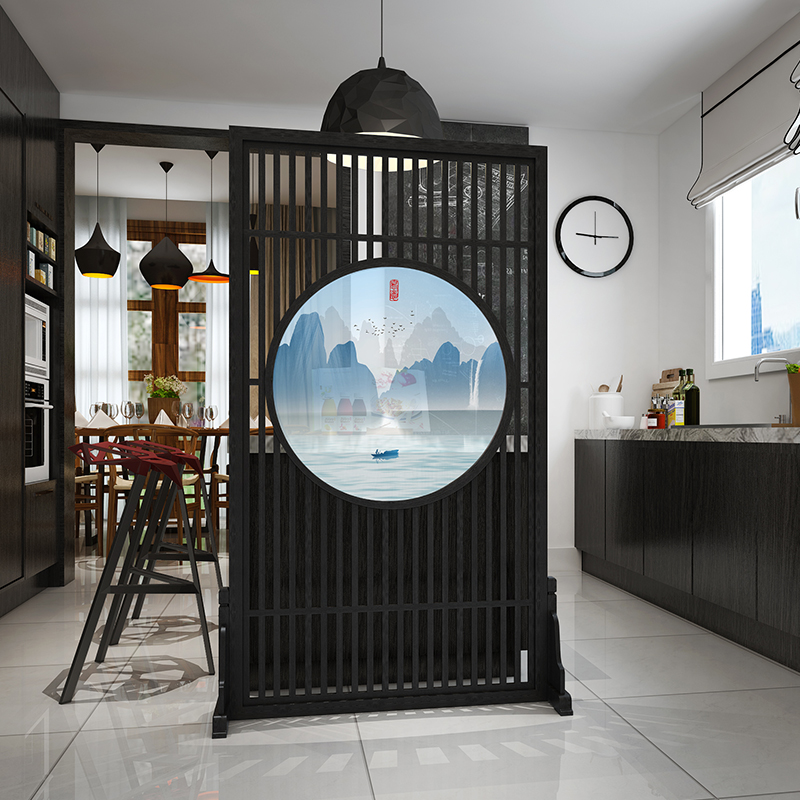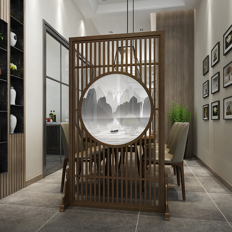 Chinese screen partition living room solid wood creative round hollow mask decoration office props screen screen