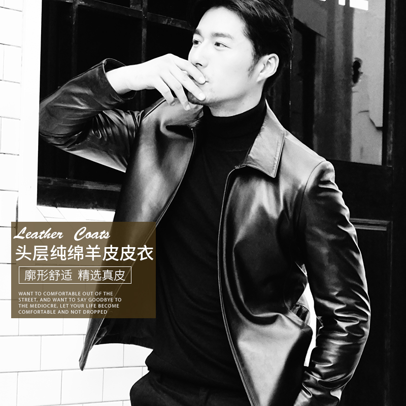 Than Fili Haining leather leather men slim Korean version handsome small lapel business leather jacket trend 2021 new