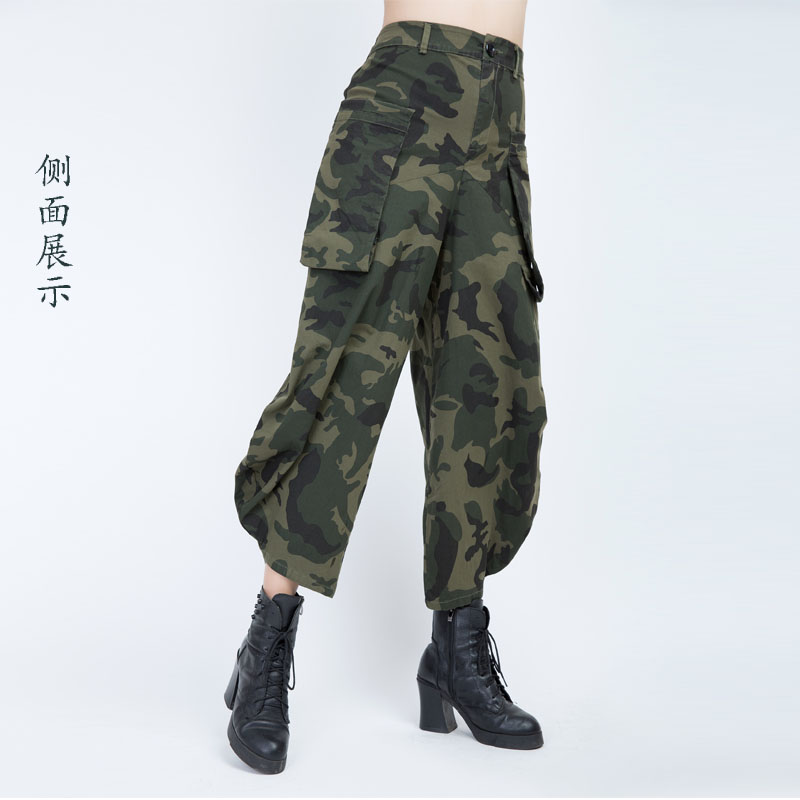 Spring and autumn new camouflage pants military pants living room bloomers casual pants large size pants women's pants nine-point sailor dance pants