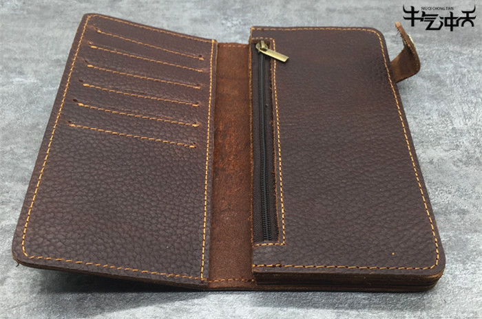 Mongolian original handmade first layer cowhide wallet long version youth wallet Mongolian thick cowhide men's wallet