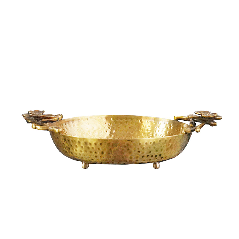 Indian Imports Handmade Brass Hand Hammer Ripple Plum Blossom Retro Contained Decorative Pan American Fruit Pan Jewelry Tray Hem